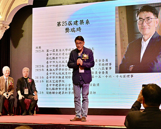 龔瑞琦 主持建築師 常與同仁分享「個人底蘊」源自東海大學建築系的學習歷程,包含建築專業訓練與人文素養,這些都成為自己投入建築工作的基礎。 此次榮獲母校肯定,受推薦為東海大學第 16 屆校友楷模,並由東海大學 劉正副校長 與 校友總會葉世宗總會長 親自授獎,不僅是開務建築的榮耀,也是同仁們學習的典範!