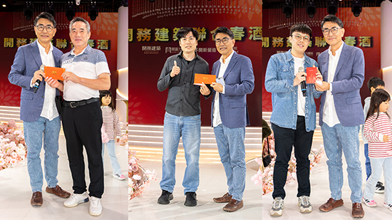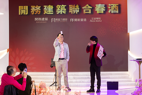 今年的開務建築聯合春酒,除了抽獎外,還頒發了「貢獻獎」,表揚服務滿 20 年與 15 年的資深夥伴:林威碩協理、何明波經理。 開務建築創立三十年,感謝資深同仁多年付出,並將寶貴經驗持續傳承給團隊。 甜蜜的小插曲:剛完成登記的新婚夫妻,隔天就現身開務春酒,接受龔建與全體同仁的祝福,為活動增添喜悅,也讓大家記住這個幸福的結婚紀念日! 春酒讓我們歡聚一堂,共享歡樂、凝聚情誼。感謝每位夥伴的付出,祝福各位 身體健康、馬到成功、旗開得勝!