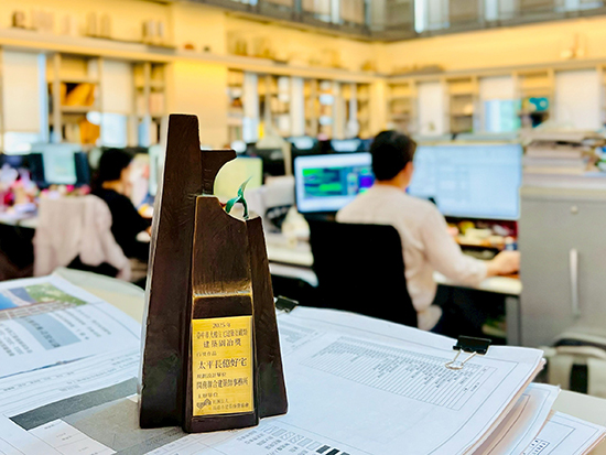 《太平長億好宅》榮獲建築園冶獎,由台中市都發局曾文誠副局長頒獎,王素娥合夥建築師代表受獎。 長億好宅以「埕」為本,串連社區共築生活。我們相信,建築不只是安身,更是凝聚情感的共好場域。